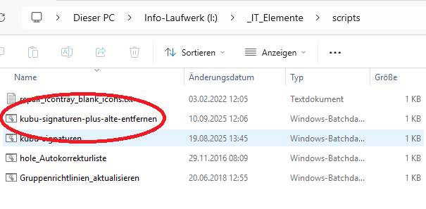 Bitte in unten stehenden Ordner (I:/_IT_Elemente/Scripts) die Datei kubu-signaturen-plus-alte-entfernen starten